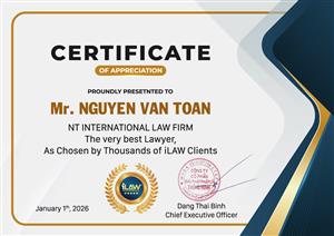 Luật sư Toàn Nguyễn – sáng lập CÔNG TY LUẬT TNHH NT INTERNATIONAL LAW FIRM (NTLAW) – được đánh giá cao bởi: