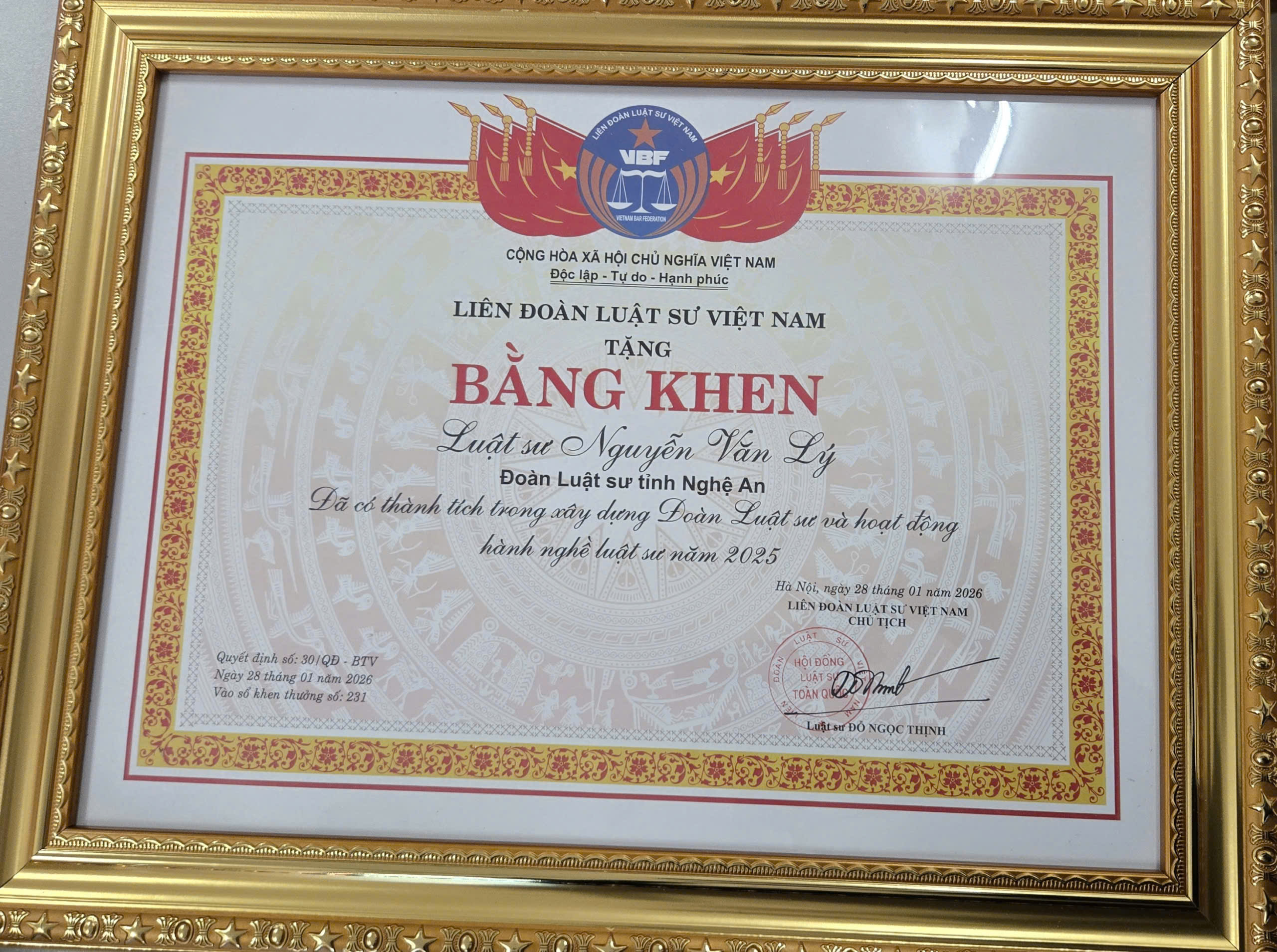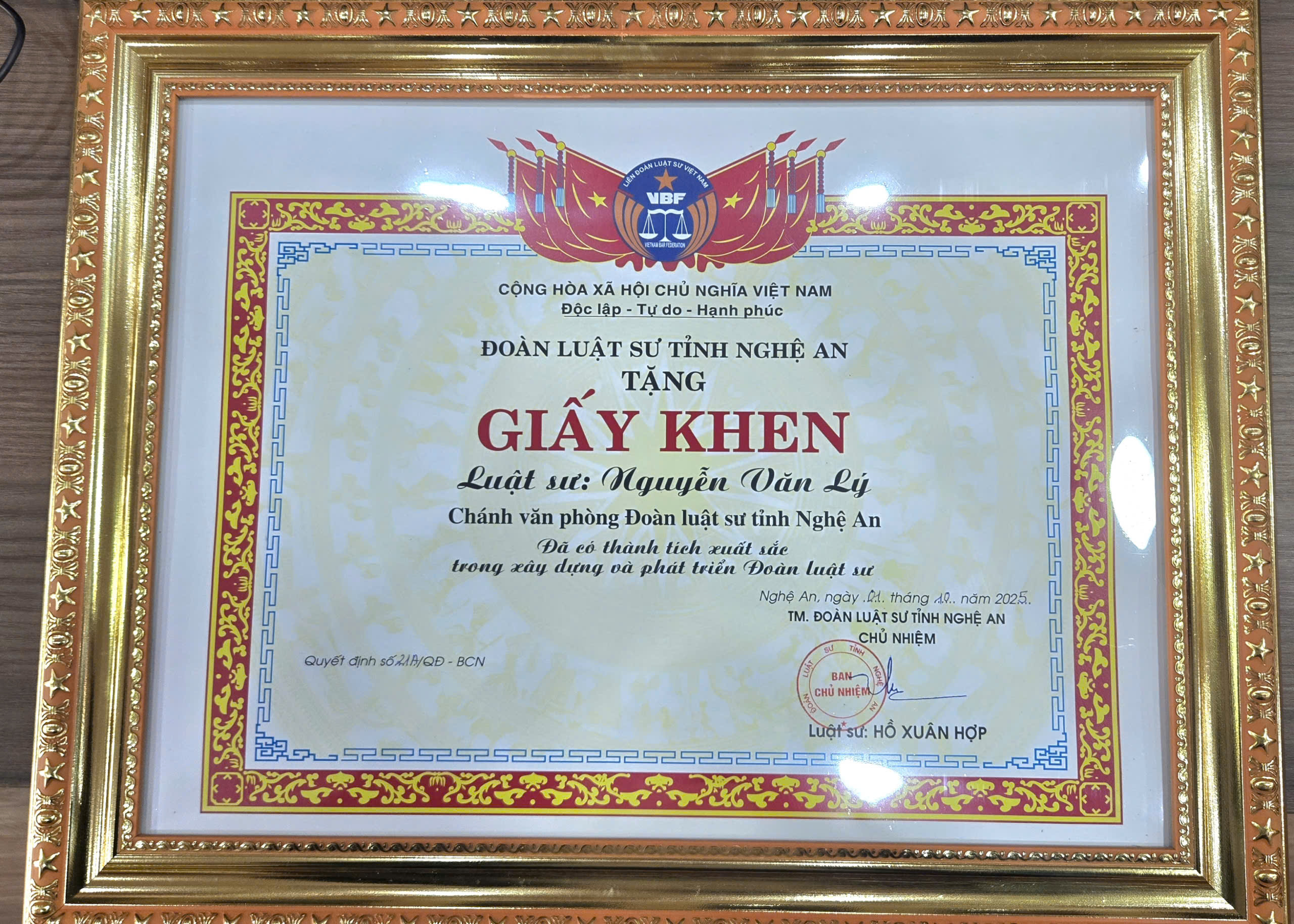 Các giải thưởng, vinh danh, bằng khen…của cá nhân Luật sư hoặc của văn phòng/công ty nơi Luật sư làm việc.